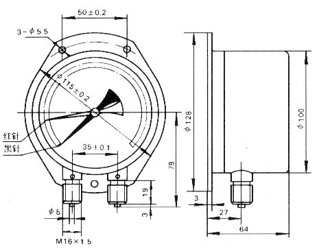YZS-102系列雙針壓力表由兩套各自獨(dú)立的測(cè)量系統(tǒng)和指示裝置等組成。