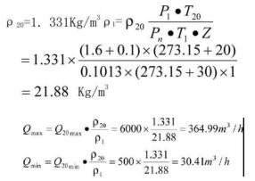 相對應Qmin)1=×a,×3600=2.8×0.00205×3600=20.664m3/h對于80A(口徑為80的渦街流量計):