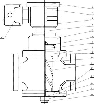 注:1、儀表盤(pán)2.電池3.二次表4.連接座5.U型帽6.發(fā)訊片7.定位齒輪8.上蓋板9.O型環(huán)10.軸11.轉(zhuǎn)子12.主體13., 上蓋板14.止推軸承15.調(diào)節(jié)螺釘16.底蓋17.遠(yuǎn)傳體。