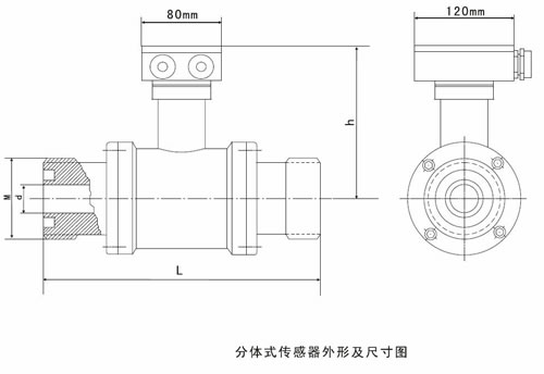 b、分體型:傳感器和轉(zhuǎn)化器分離安裝,通過連接電纜形成流量計(jì)量系統(tǒng)。